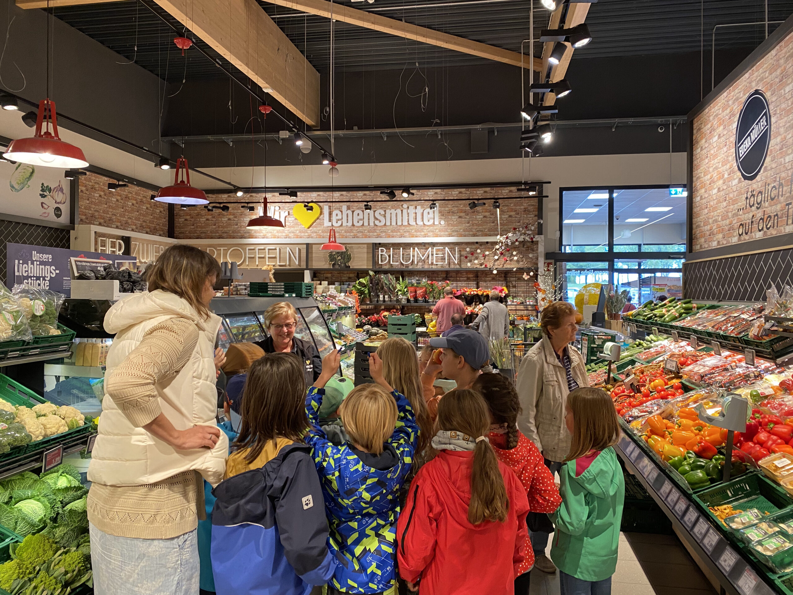 Am 22.09.2023 feierten wir Erntedank. Dieses Jahr unter dem Motto: WERTvolles Essen. In 7 Gruppen haben sich die Schülerinnen und Schüler diesem durchaus komplexen Thema angenähert. Es wurden die richtige Lagerung von Obst und Gemüse besprochen, Kühlschränke gebaut, Rezepte für überreife Bananen ausprobiert, Äpfel verkostet und über den Umgang mit Lebensmitteln gesprochen. Eine Gruppe hat sich zudem auf Forschungsreise durch Grumbach begeben. Die Kinder wollten herausfinden, was mit Lebensmitteln passiert, die nicht verkauft werden. Der Forschungsauftrag führte uns zur Bäckerei Friedrich, zum Rossmann, zum EDEKA und zu Unser Bäcker. Vielen Dank an all die freundlichen Mitarbeiterinnen, die sich Zeit für die Kinder genommen haben! Es war überaus spannend und erfreulich zu hören, wie wenig Lebensmittel tatsächlich in der Tonne landen.