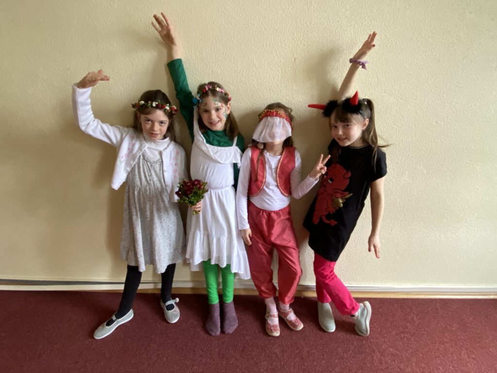 So konnten wir Lehrerinnen die Zeugnismappen an Prinzessinnen, Dinos, Bauchtänzerinnen, Pippi Langstrumpfs, Pokemons, Clowns, Zauberer, Blumenmädchen und so manch´ andere lustige Gestalten übergeben.
