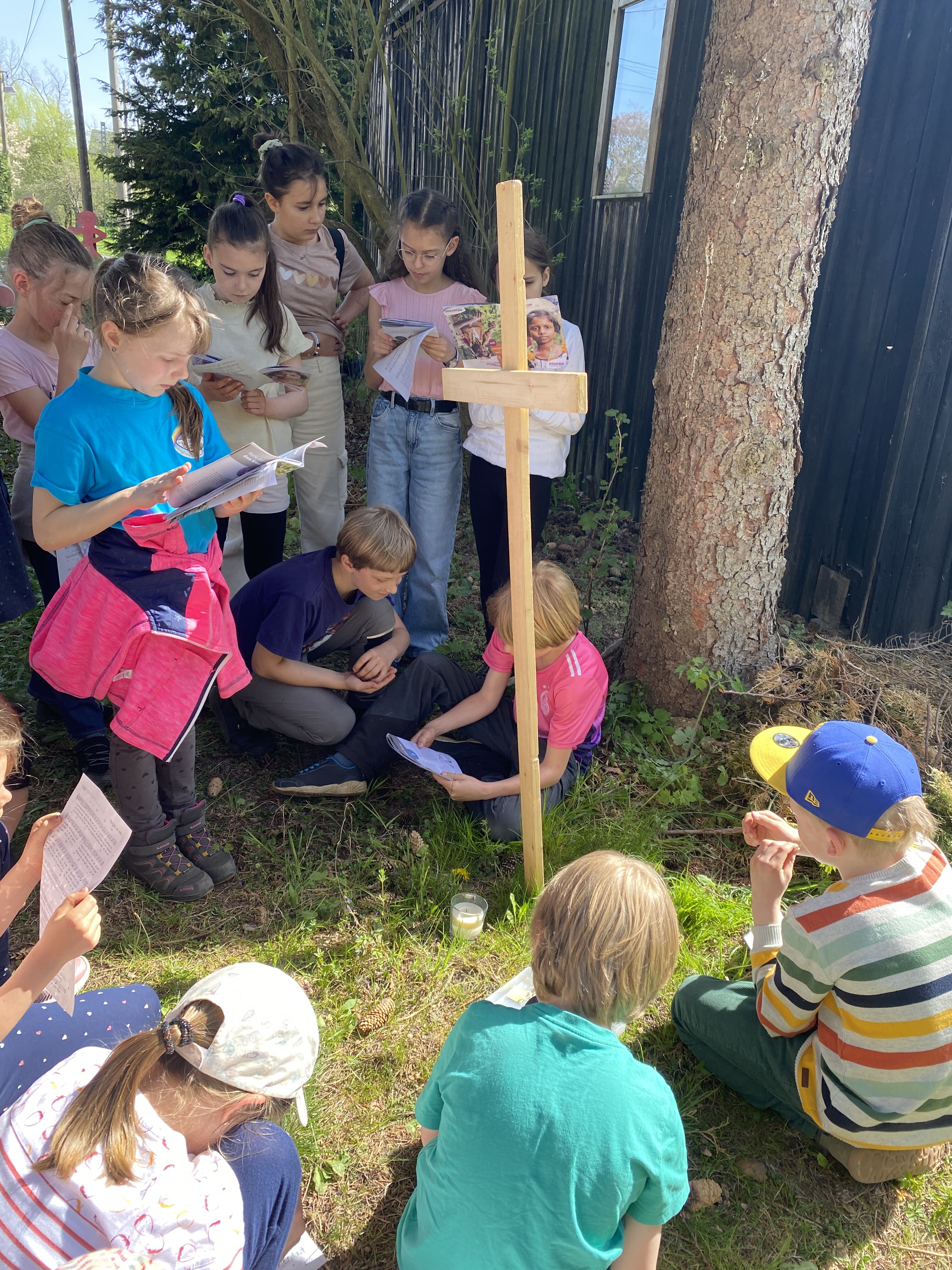 Am Gründonnerstag fand unser Kreuzweggottesdienst statt. Auf dem Weg rund um die Grumbacher Kirche konnten die Kinder an 6 Stationen den Leidensweg von Jesus nachempfinden. Die Erinnerungen an den schweren Weg damals waren verknüpft mit Herausforderungen, denen sich Menschen heute stellen müssen. Dabei standen die Insel Sri Lanka und ihre Bewohner und Bewohnerinnen im Vordergrund.