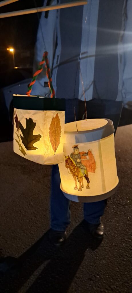 Im Anschluss an den Gottesdienst wartete wieder eine stattliche Reiterin vor der Kirche auf uns. Sie führte den langen, leuchtenden Martinsumzug an. Es war eine Freude zu sehen, welch´ kreative Lampions auch dieses Jahr beim Umzug vertreten waren.